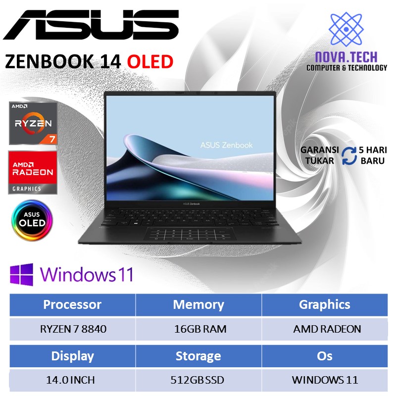Asus Zenbook 14 Oled UM3406HA laptop Ryzen 7 8840 Ram 16GB 512GB Ssd Windows 11