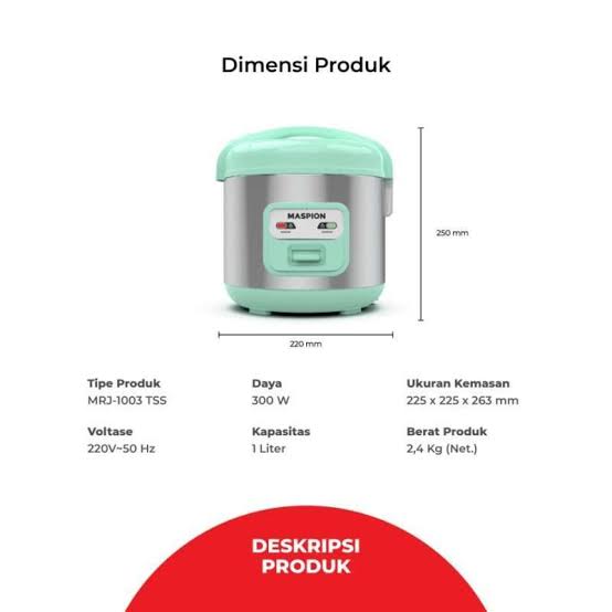 Magic Com Maspion MRJ 1003TSS Kapasitas 1.0 L Body Material Stainless Steel Garansi Resmi - Kredit Cepat.Id