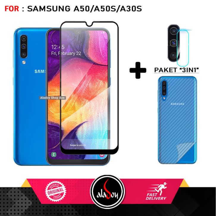 Paket 3in1 Tempered Glass Anti Static Samsung A50S / A50 / A30S Free Tempered Glass Camera dan Skin Carbon