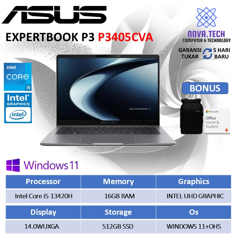 Asus Expertbook P3 P3405CVA Intel Core i5 13420H Ram 16gb 512gb Ssd W11+OHS Garansi Resmi - LY5150WS