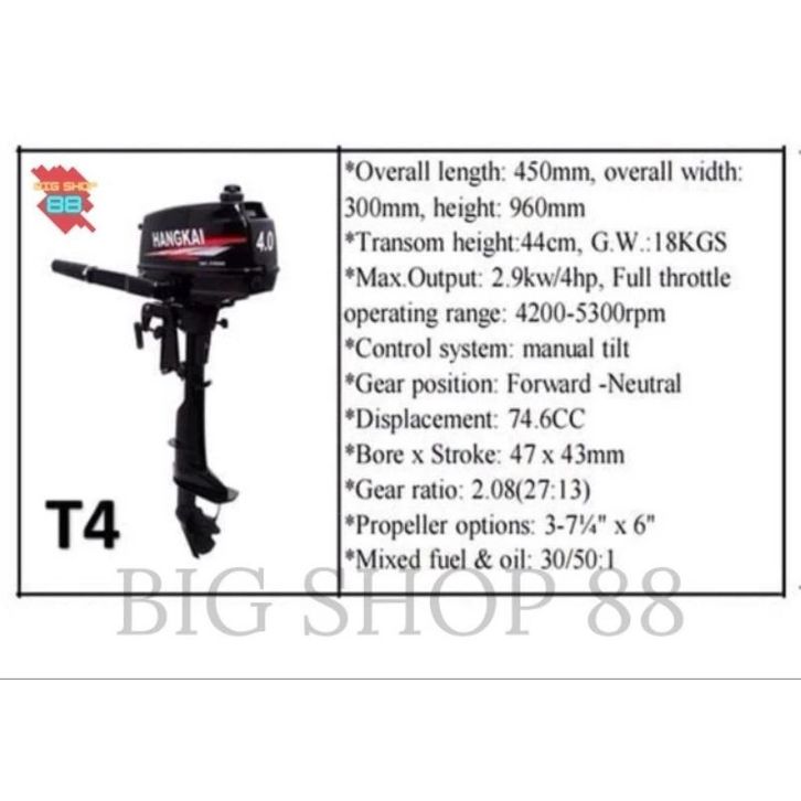 TERLARIS Mesin Tempel Perahu Outboard Hangkai 4PK 4HP 2 TAK STROKE Kompatibel Yamaha Parsun
