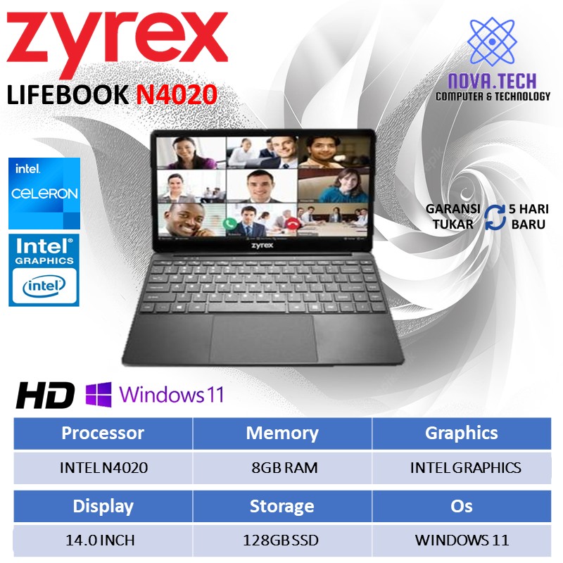 Zyrex L-BOOK N4020 Ram 8gb 256gb Ssd Windows 11 PRO Layar 14.0 inch