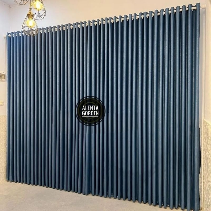 Gorden Jendela Minimalis Bahan blackout 12 Gelombang polos abu tua coklat tua muda lebar 250cm 200cm
