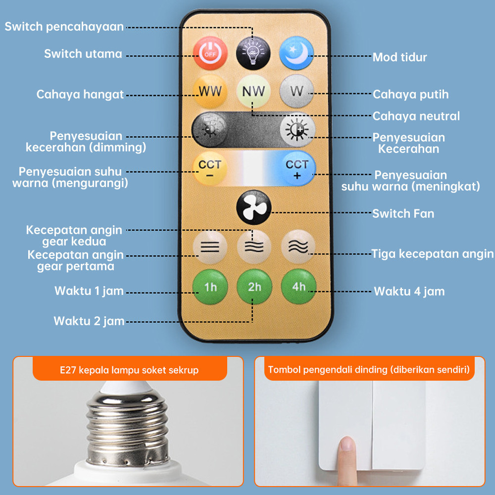 52CM Kipas Angin Plafon Lampu 40W 2in1 Lampu Kipas Langit-Langit Multifungsi Lampu Kipas Remote Control Yang Dapat Dired