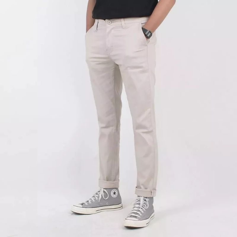 (Gratis Ongkir) ELANA CHINO Panjang pria Slimfit KERJAHARIAN Santai Casual Formal Hitam Abu Cream Mocca Size 27-38
