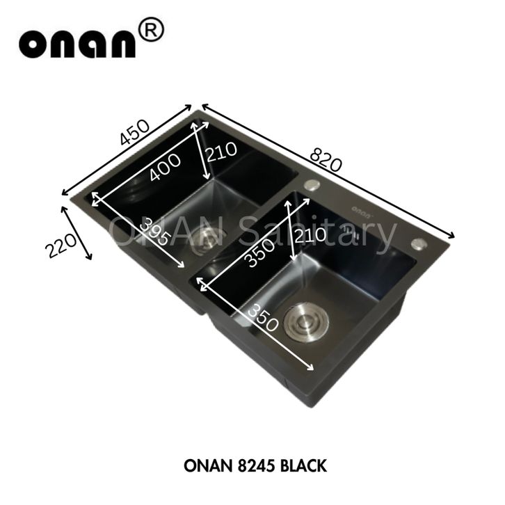 Kitchen Sink ONAN 8245 Bak Cuci Piring Stainless Steel Washtafel Free Soap Dispenser