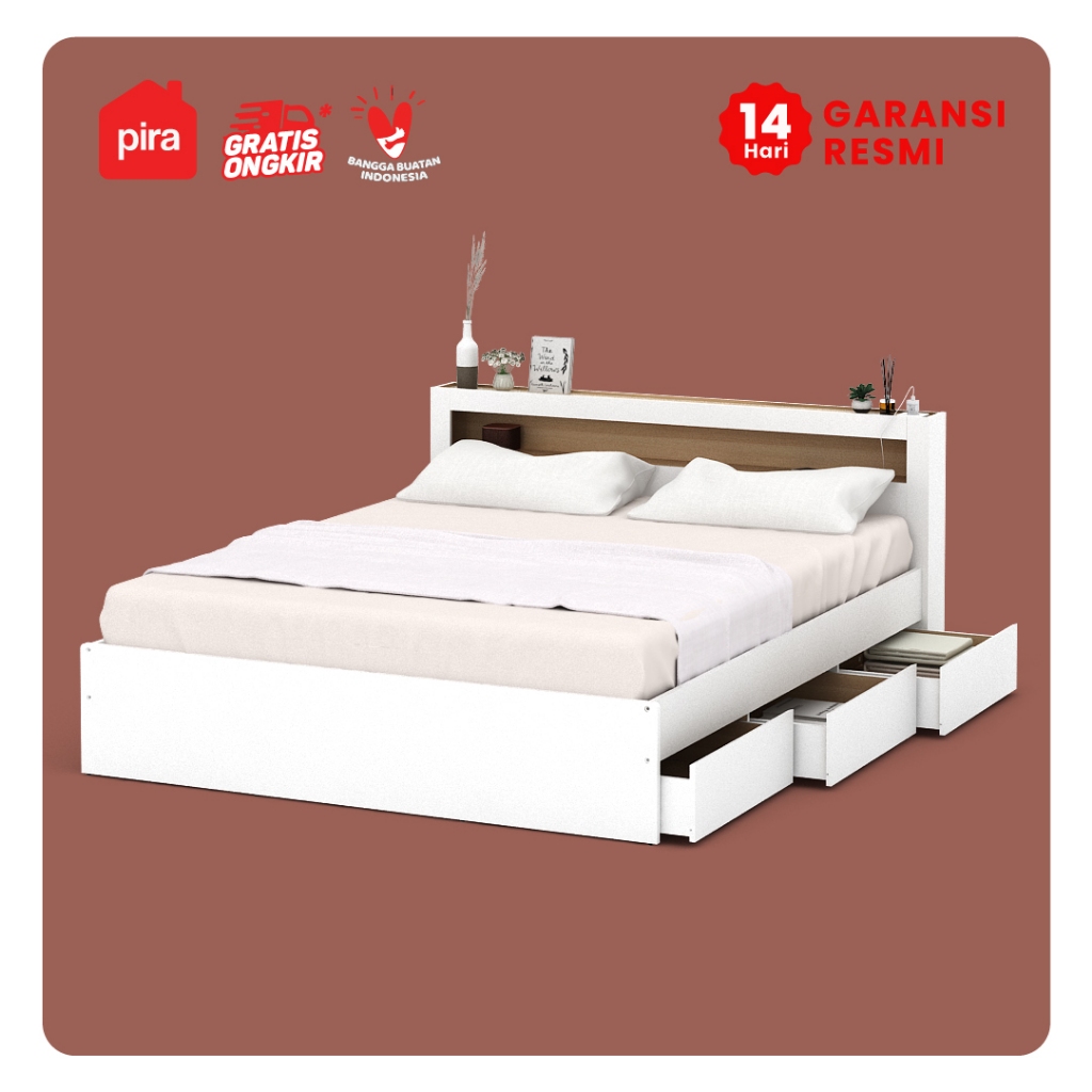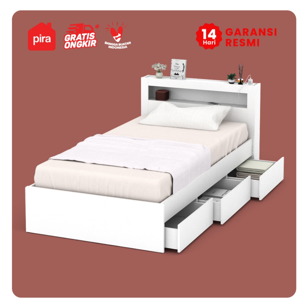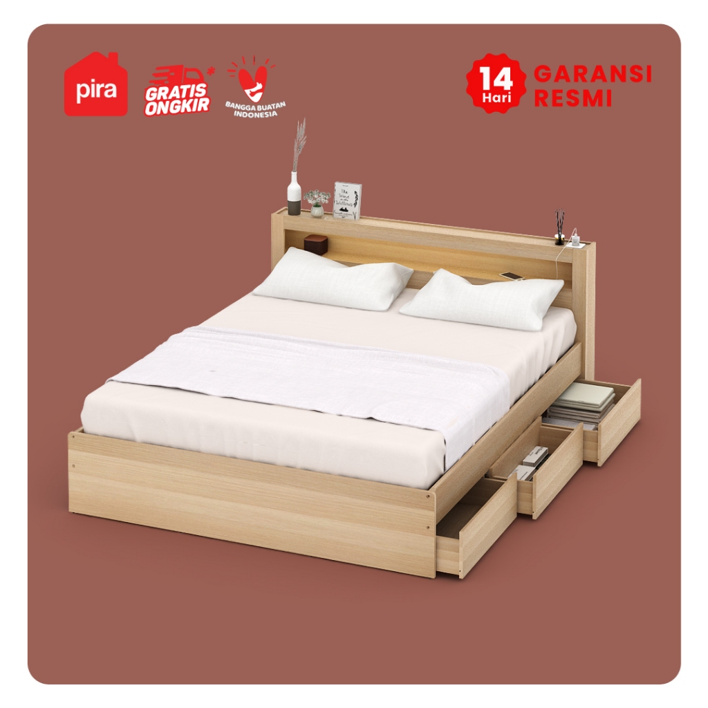 Dipan / Ranjang / Tempat Tidur dengan Laci Penyimpanan dan LED Pira - Samara BD160