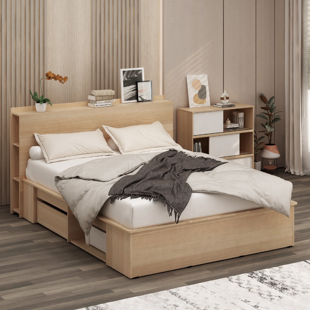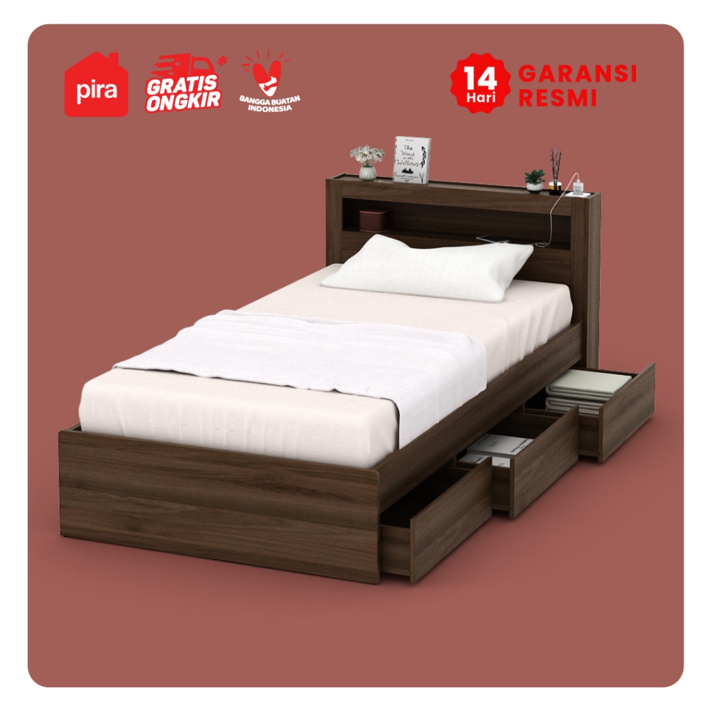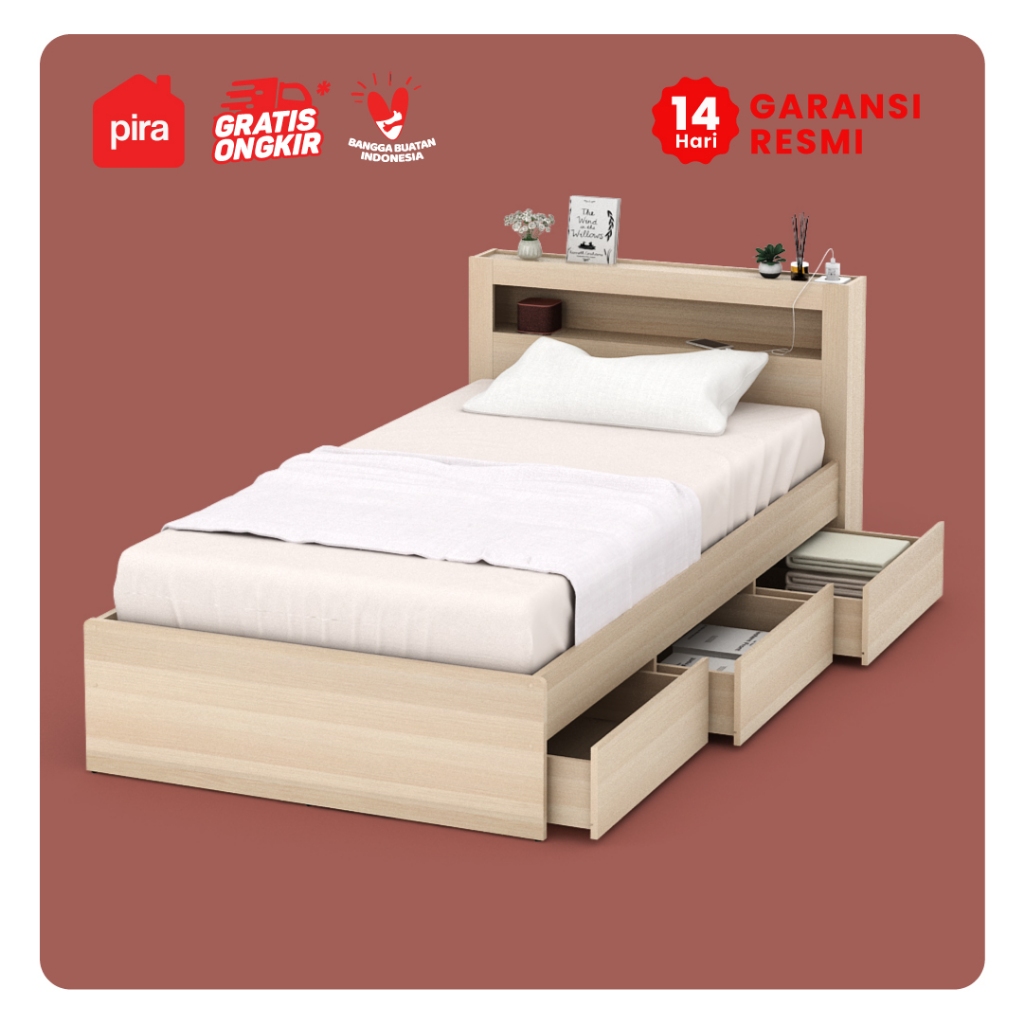 Dipan / Ranjang / Tempat Tidur dengan Laci Penyimpanan dan LED Pira - Samara BD160