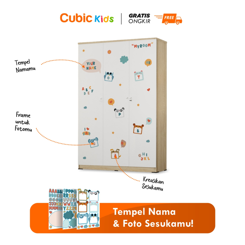 Cubic Lemari Pakaian Bergambar / Wardrobe Baju 3 Pintu / LUNA LP 3P
