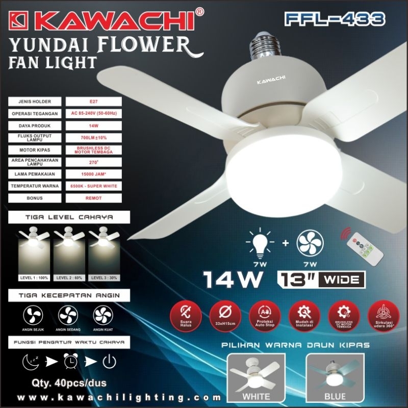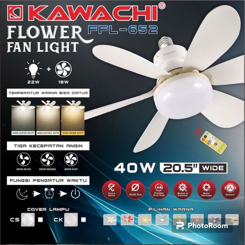 HOT ITEM‼️‼️ Anti Panas / Model Baru Kipas Langit Langit Gantung Dengan Lampu LED E27 / KAWACHI / FLOWER FAN LIGHT / 16,