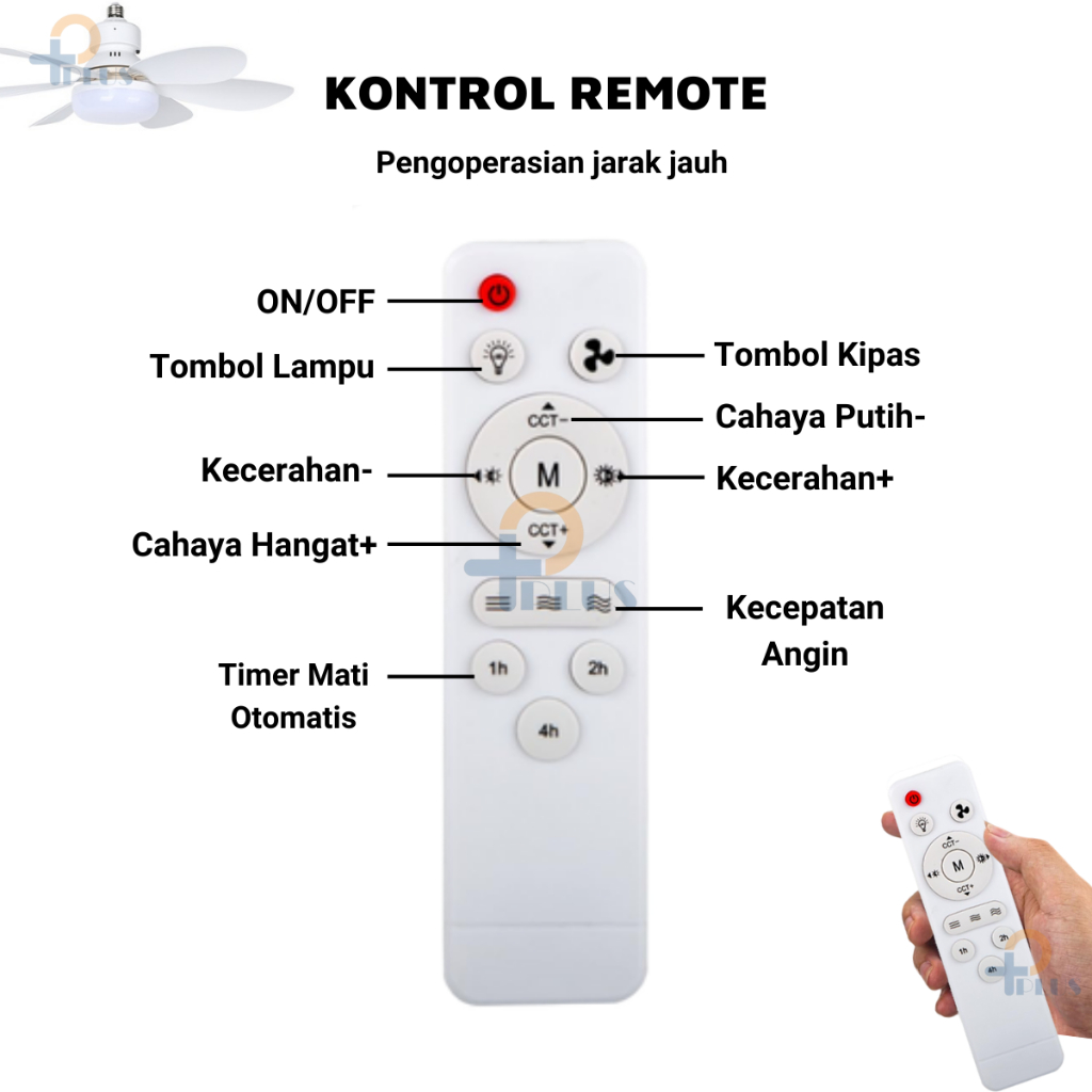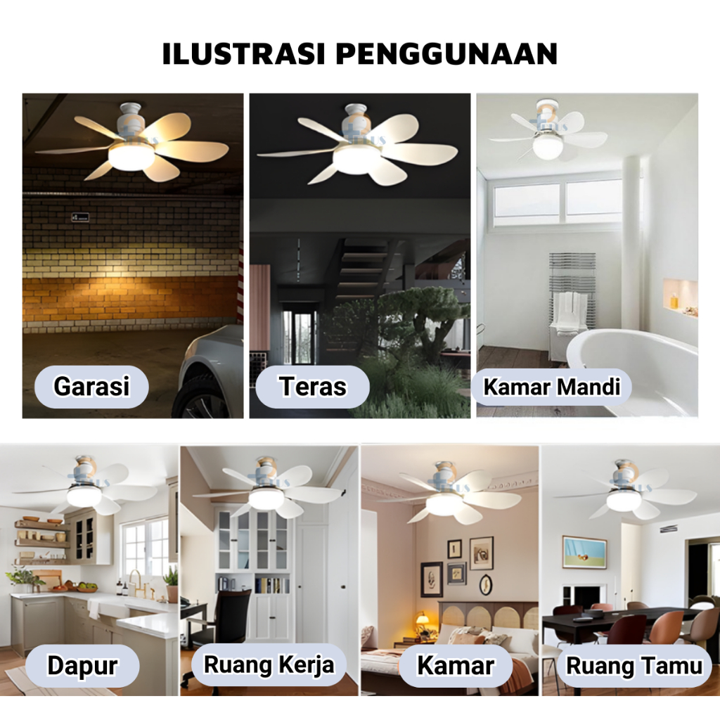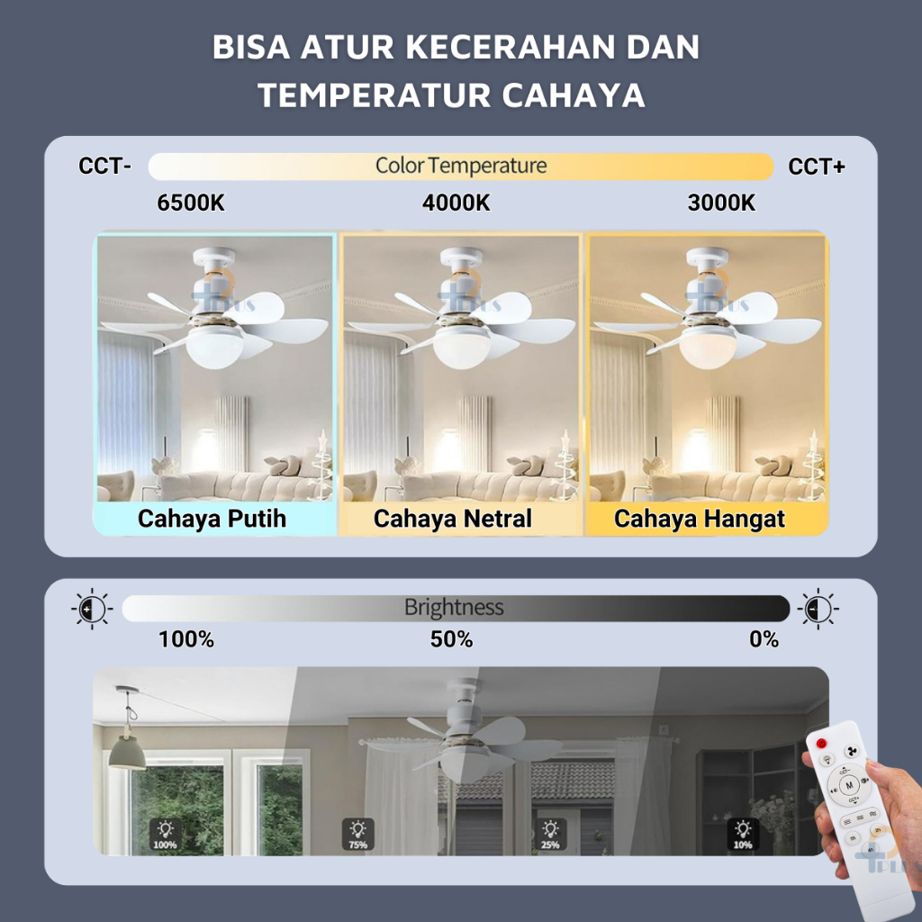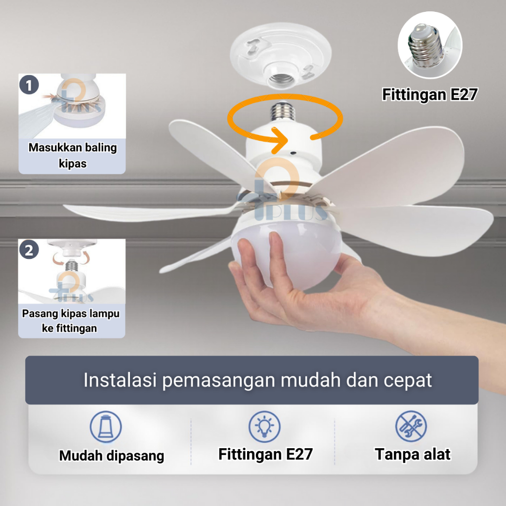 [ Pplus ] Lampu Kipas Gantung langit-langit 40W 6 Baling LED 3 Warna Cahaya Fitting E27 +Remote / Lampu Kipas Led 40W