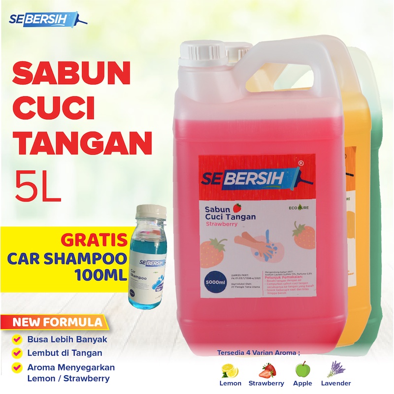 SEBERSIH Sabun Cuci Tangan / Hand Soap Antiseptik Antibacterial - 5 Liter Lemon/Strawbery