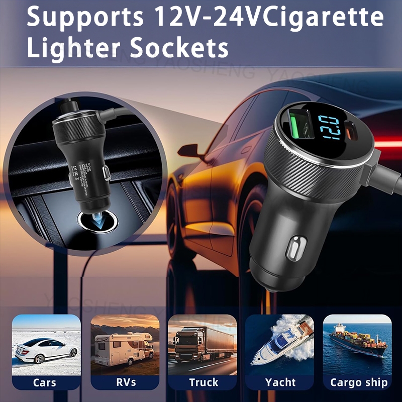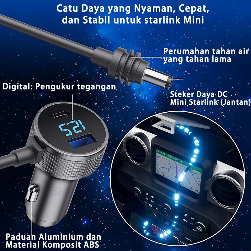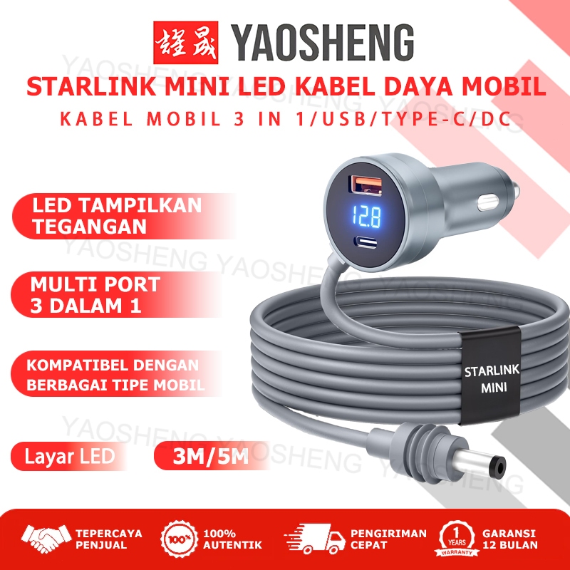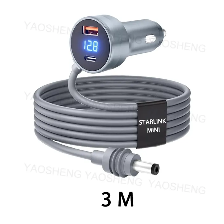 Starlink Mini Kabel Daya Mobil 3-in-1 3M/5M dengan Tampilan LED USB/Type C DC 12V-24V 18 AWG