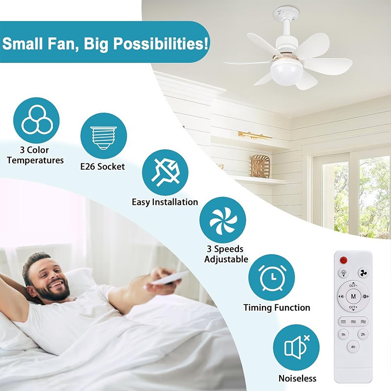 52CM Kipas Angin Plafon 40W 2in1 Lampu Kipas Angin LED E27 Multifungsi Dengan Peredupan Remote Control