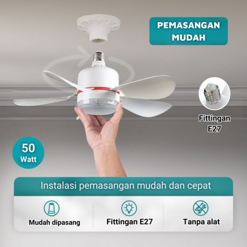 Lampu kipas langit-langit LED E27 dengan peredupan remote control/Kipas angin plafon 50W lampu kipas angin led E27 multi