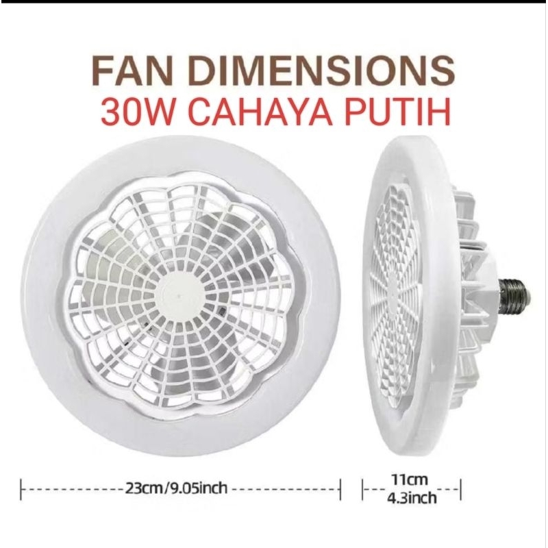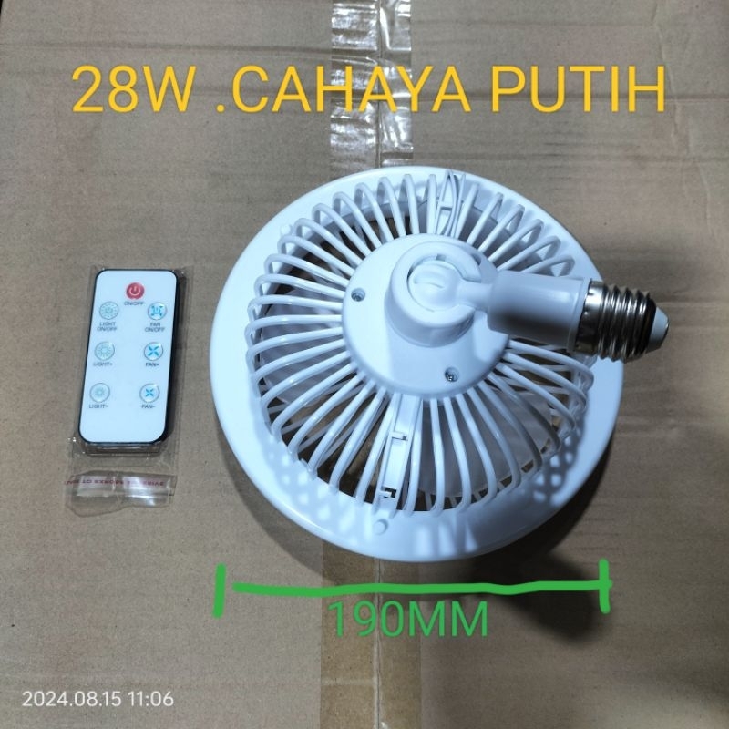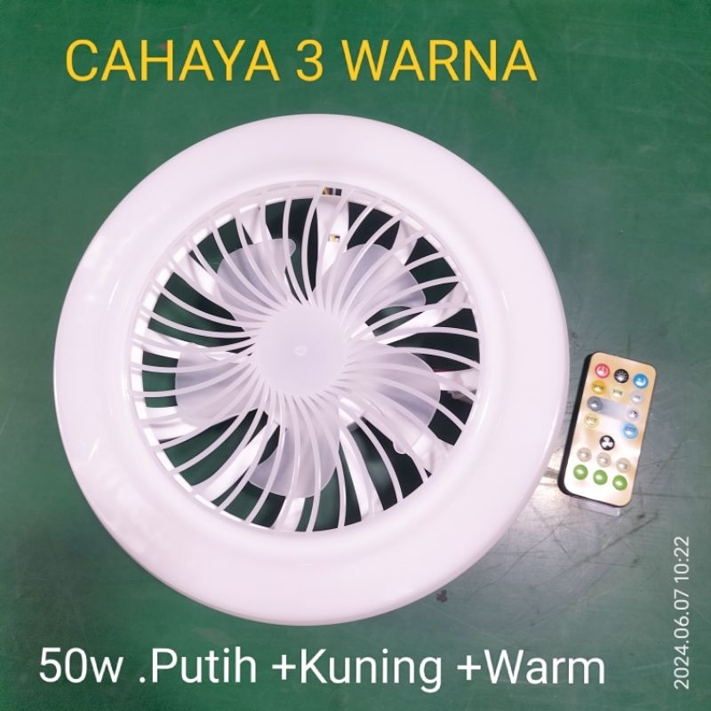 Lampu + Kipas Angin .28w.30w.50w. E27 220v Remote Control Cahaya 1 Warna Putih. 3 Warna Putih+Kun+Ww