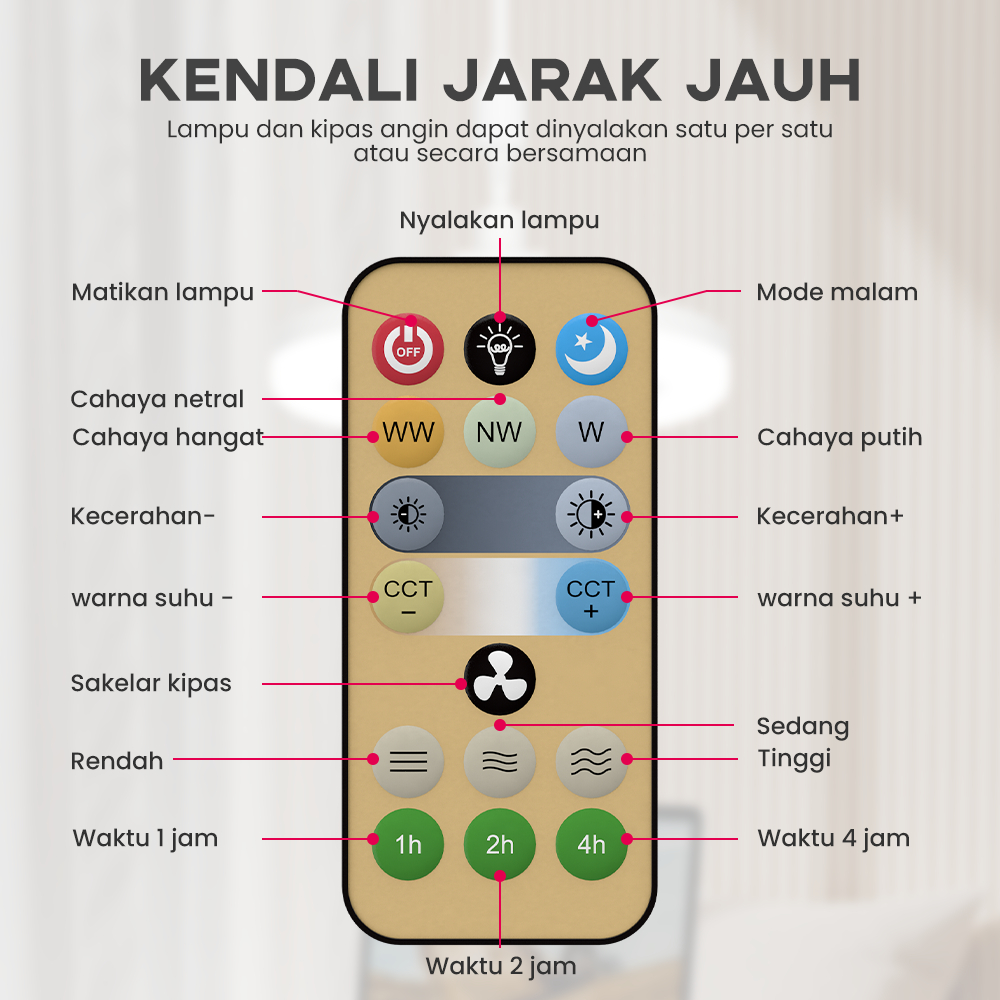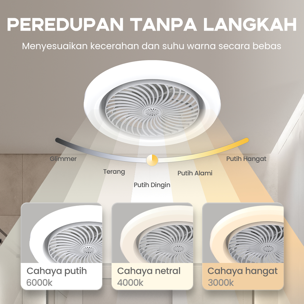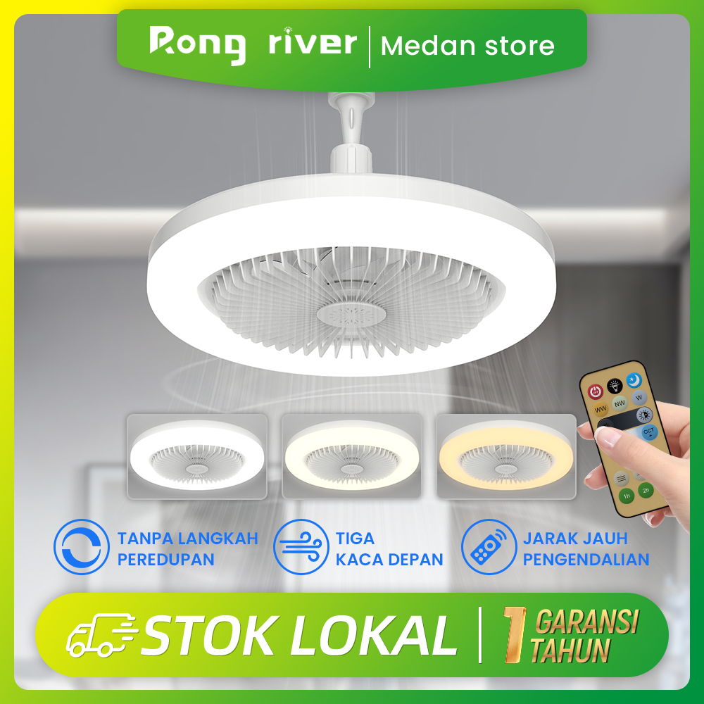 RONG RIVER [Medan] 30W Lampu Kipas 2in1 Kipas Lampu LED Kipas Angin Plafon Lampu 3 Warna Remote Dapat Diatur 360° E27 La