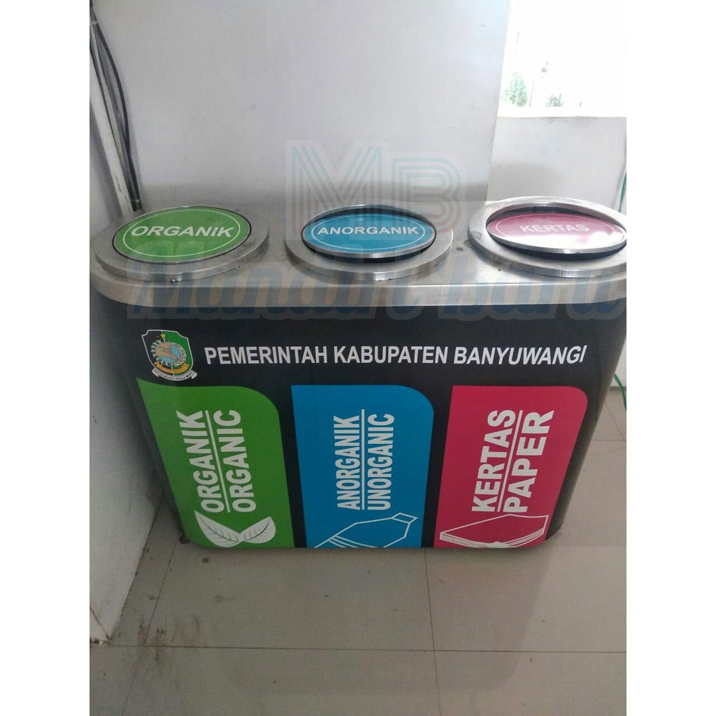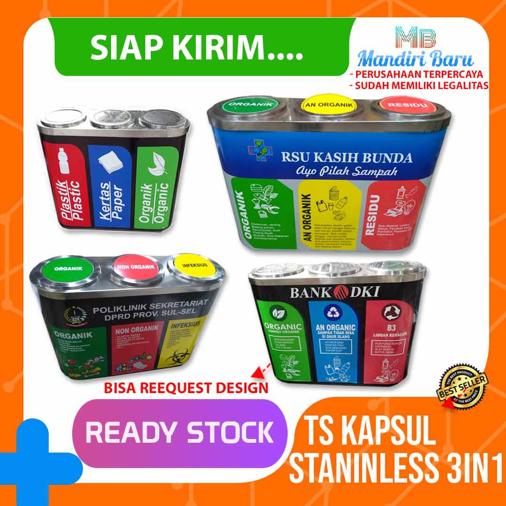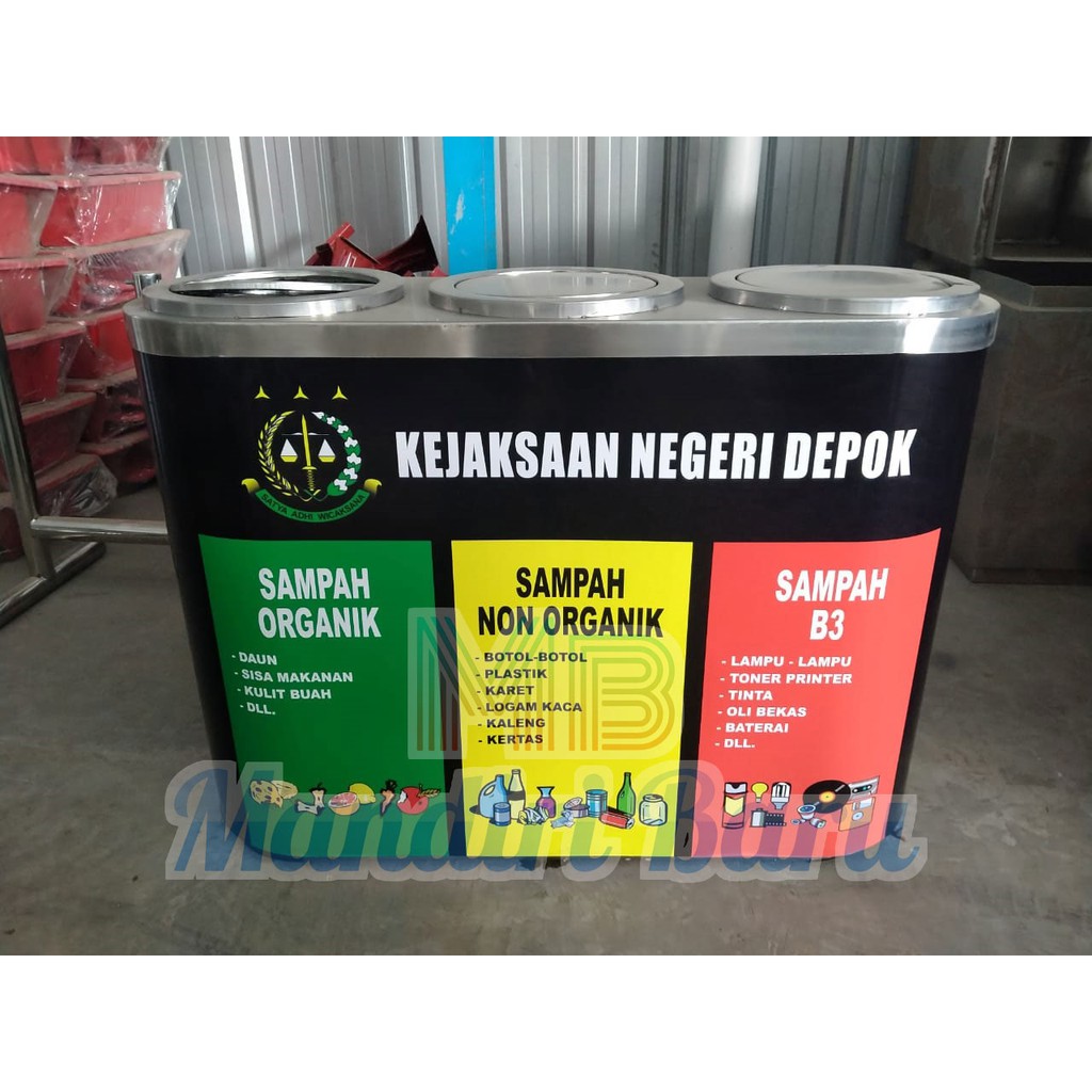 JUAL TONG SAMPAH STAINLESS GABUNG 3 IN 1, TEMPAT SAMPAH STAINLESS 3 WARNA PILAH 3 JENIS PEMBUANGAN