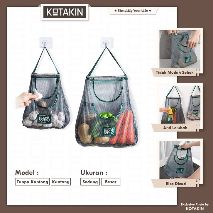 KOTAKIN Jaring Kantong Bawang Buah Gantung Wadah Sayur Cabai Serbaguna Fruit Cover Pembungkus Bahan Masak Dapur