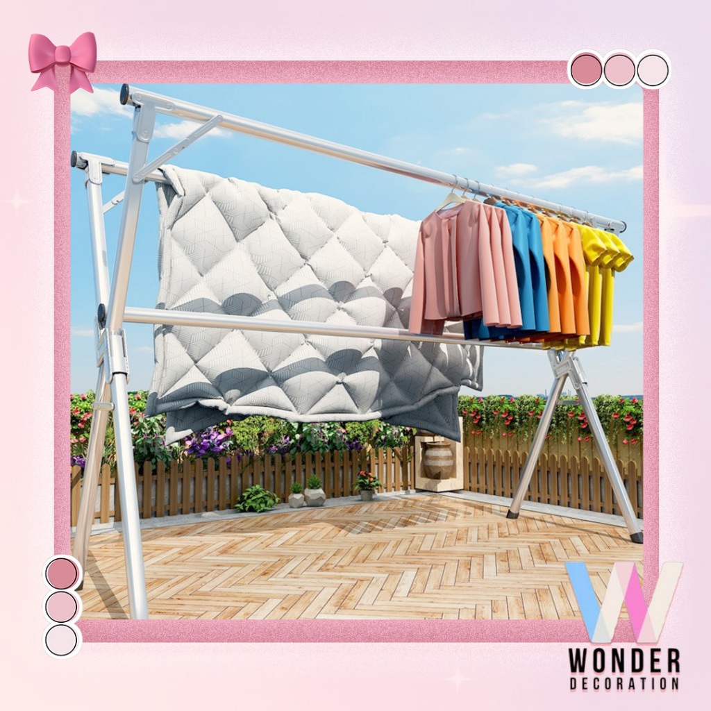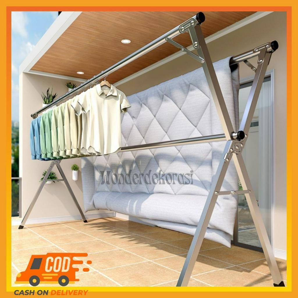 Jemuran Baju Lipat Stainless Steel Portable Jemuran Baju Anti Karat Jemuran Portable -Wonderdekorasi