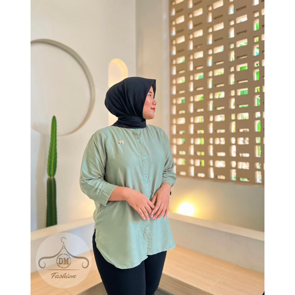 (Gratis Ongkir) Kemeja Rayon Twill lengan 3/4 Blouse wanita lengan 3/4