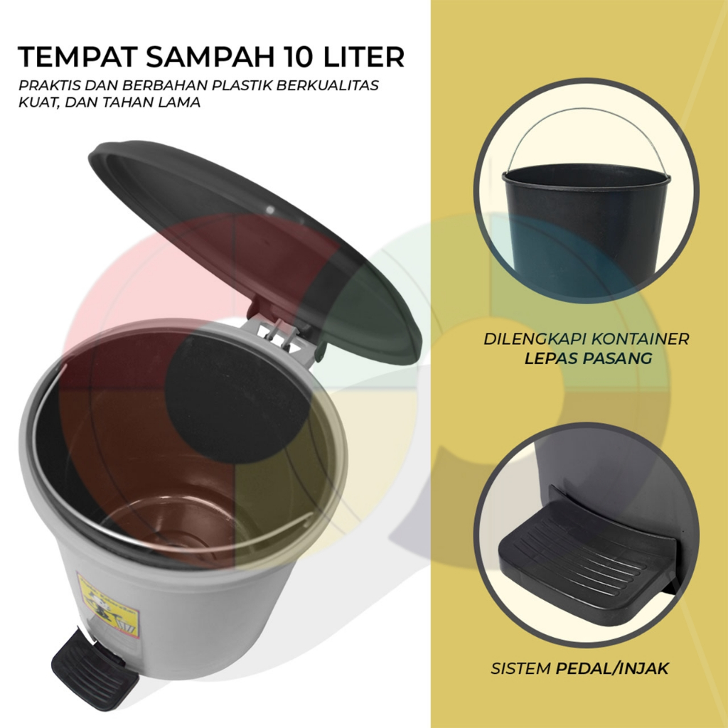 Tempat Sampah Injak Silver 10 Liter Plastik + Kontainer Dalam - Tong Sampah