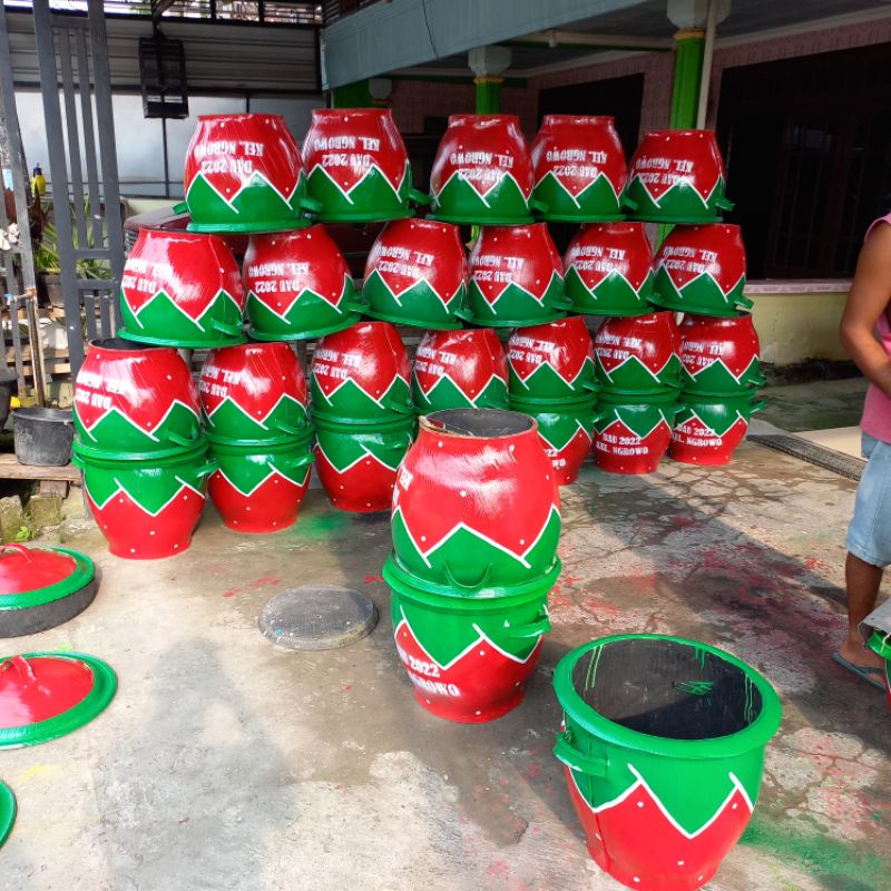 TERLARIS ! TERMURAH ! Bak Sampah Karet Strowberry / Tempat Sampah Ban Bekas