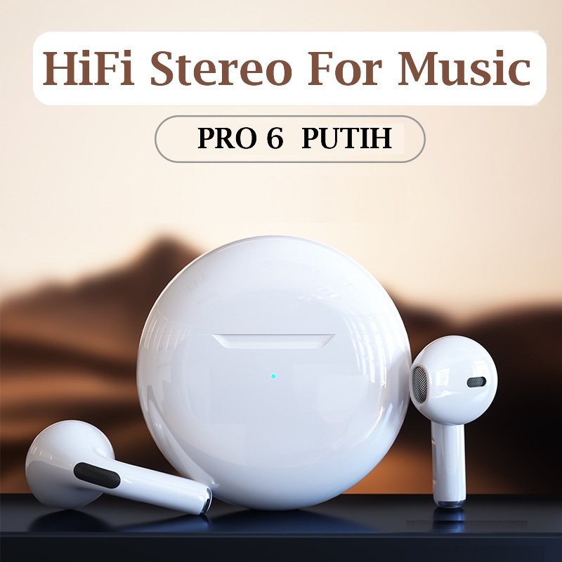 Headset Bluetooth Pro 6 TWS With Mic HiFi Stereo Earphone Wireless