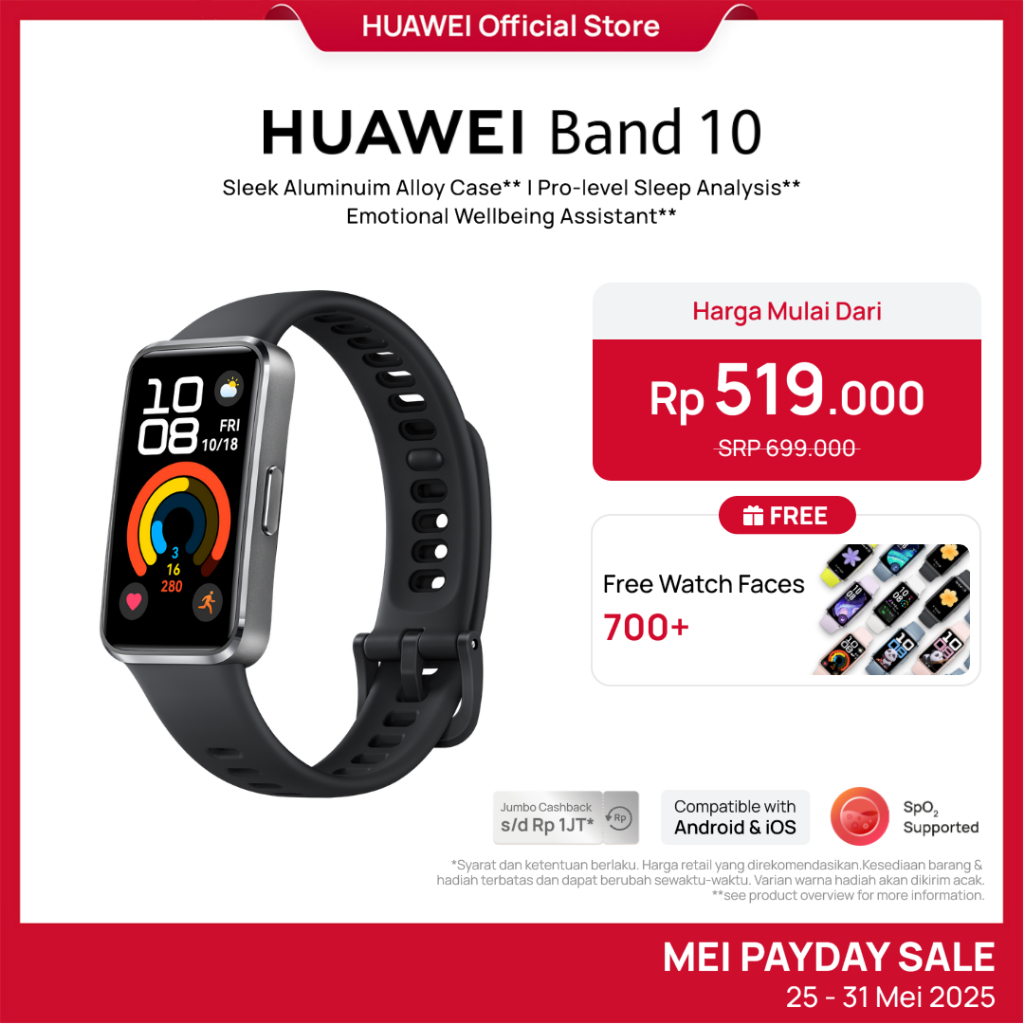 [Mall] HUAWEI Band 10 Smartband | Sleek Aluminum Alloy Case | Pro-Level Sleep Analysis | Emotional Wellbeing Assistant