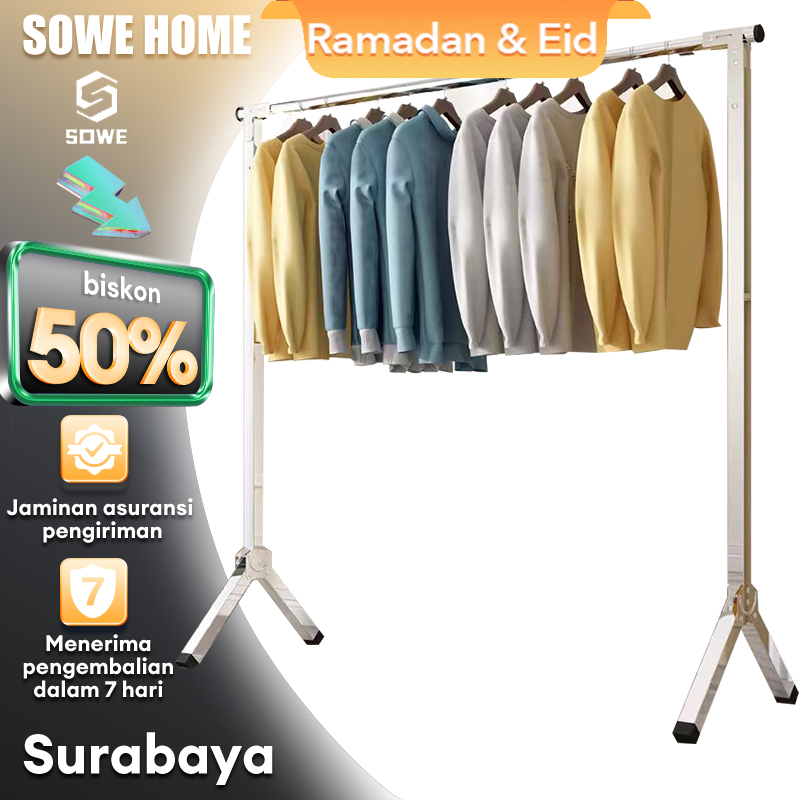 Jemuran Baju Lipat Stainless Steel Single 160/200/240CM Jemuran Pakaian Tahan Karat Jemuran Hanger