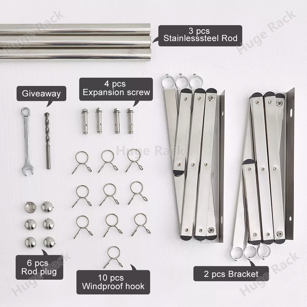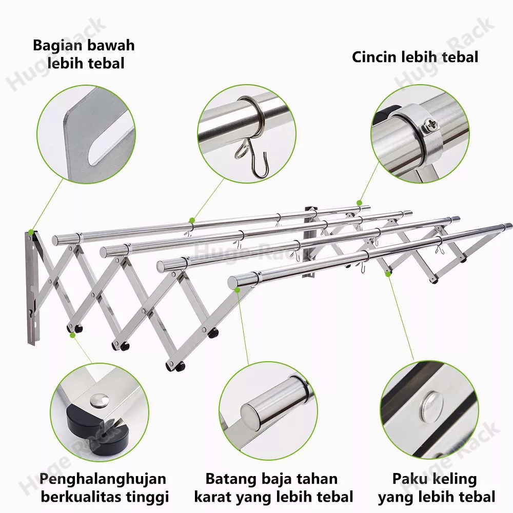 Jemuran Dinding lipat Stainless Jemuran Baju Dinding 200cm Jemuran Pakaian Dinding Jemuran Hanger Portable