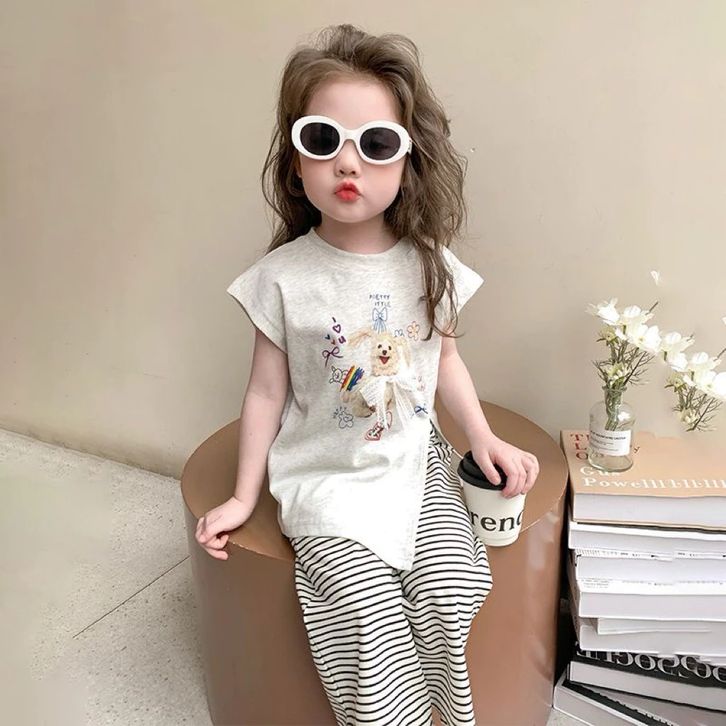 Dress Anak Perempuan 2-10tahun Setelan Kaos Kulot Stripe 3/4 Baju Anak Perempuan Kasual Harian Stylish