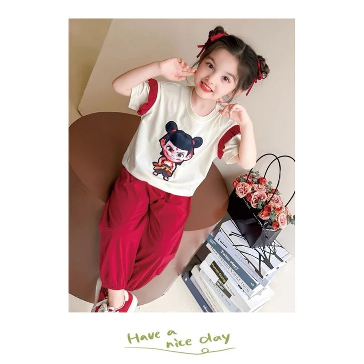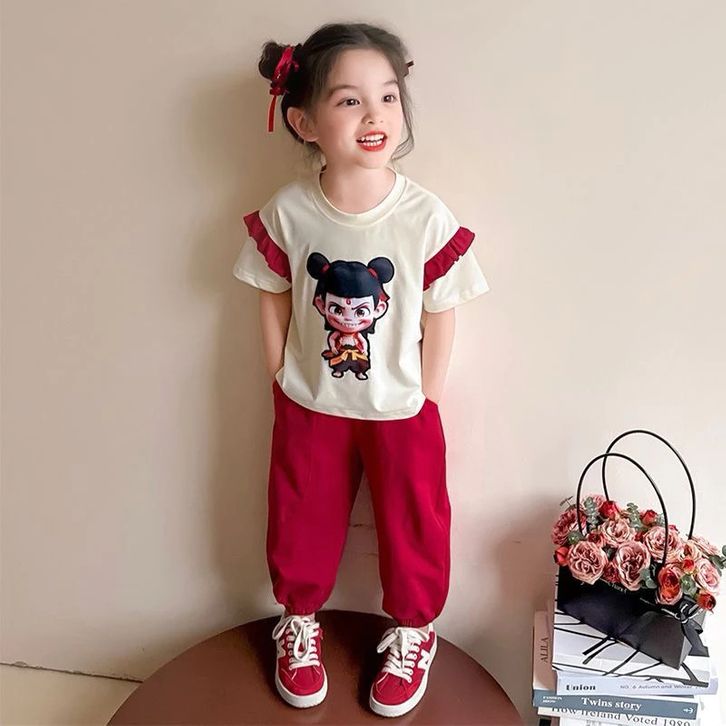 Setelan Anak Perempuan Viral Terbaru 2025 2-10tahun Setelan Oversize Jogger Nezha Stylish Baju Anak Perempuan Terbaru