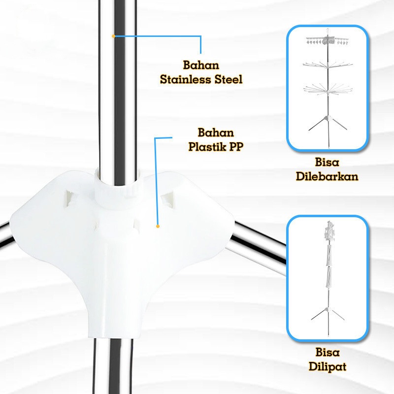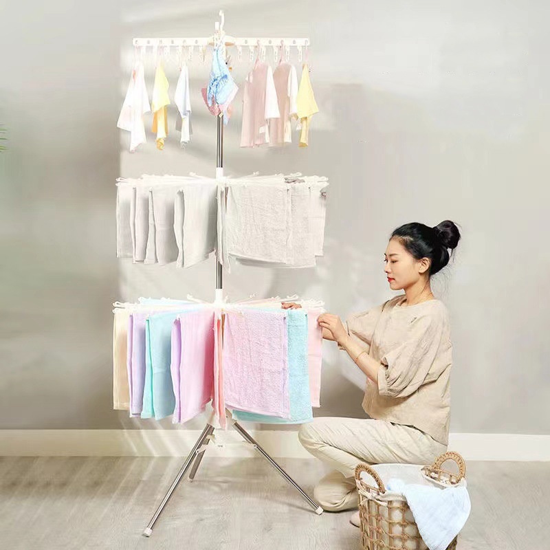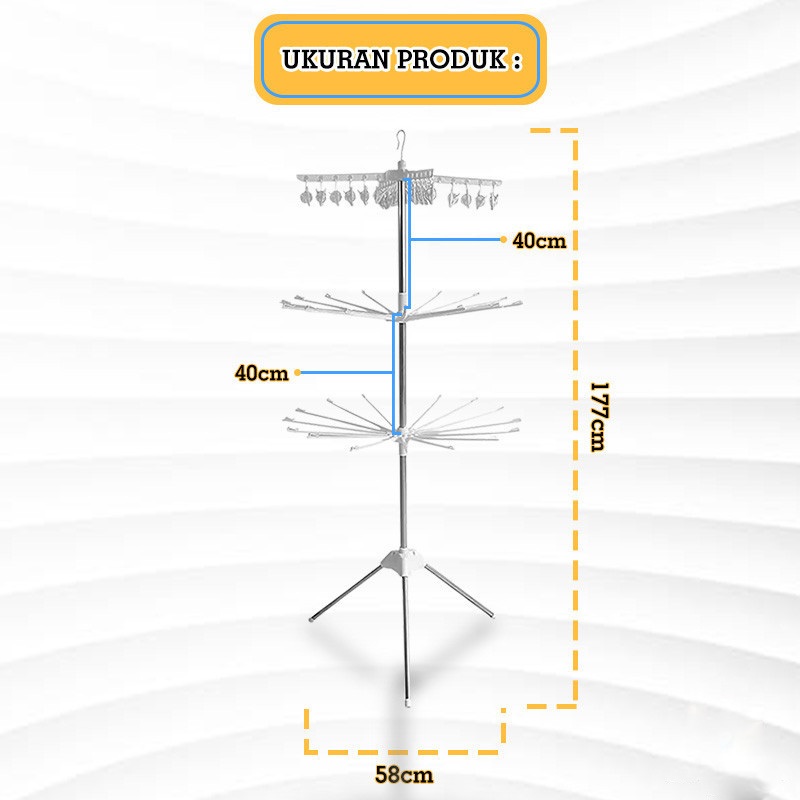 Rak Gantungan Baju 3 Susun / Jemuran Pakaian Model Menara 16 Jari 3 Tingkat / Foldable Clothes Drying Airer Hanger