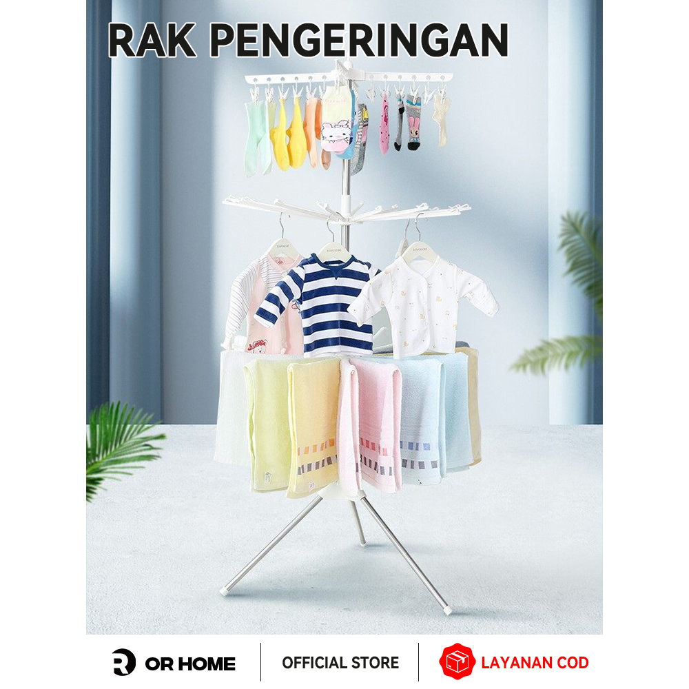 OR Rak Jemuran Menara Gantungan Jemuran Bayi Lipat Kokoh Portable 24Jepitan MJJ-2