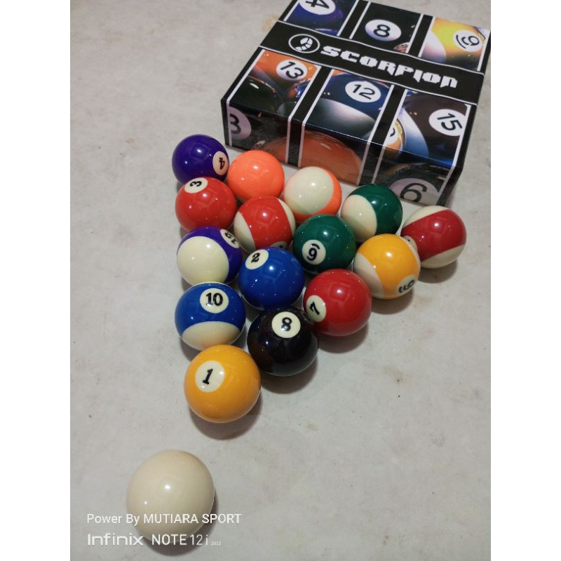 BOLA BILLIARD SCORPION ORIGINAL SIZE MEDIUM 2 1/16 BUAT MEJA 5-7 FEET BEST SELLER