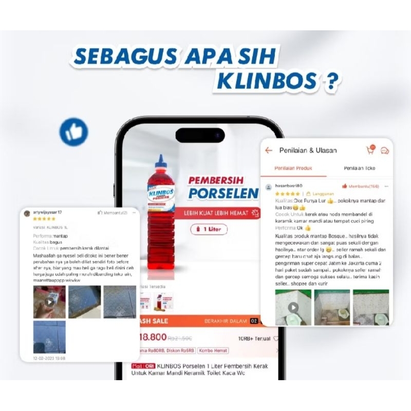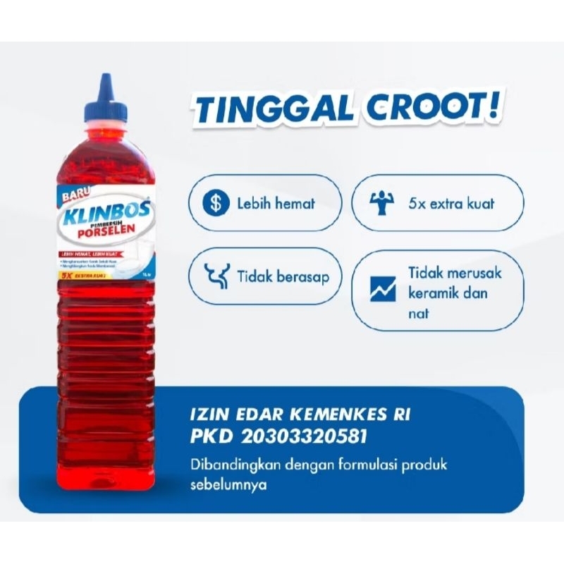 KLINBOS Porselen 1 Liter Pembersih Kerak Untuk Kamar Mandi Keramik Toilet Kaca Wc