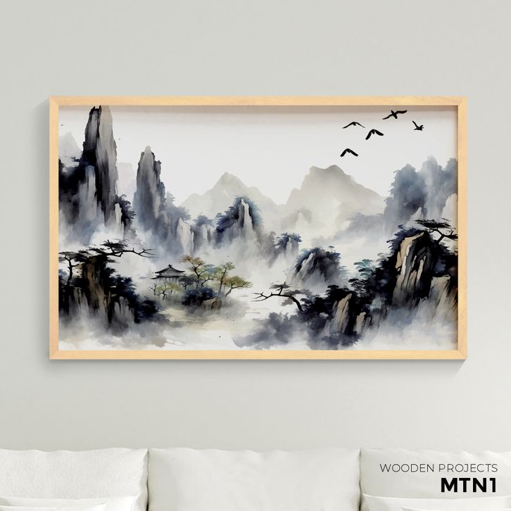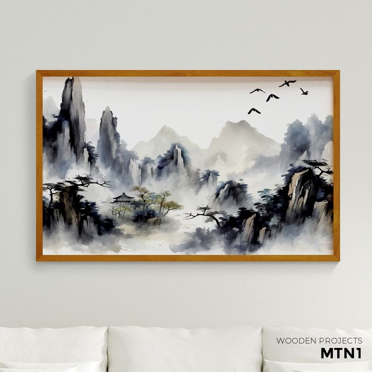 Wooden Projects Hiasan Dinding Frame Kayu Premium Wall Decor Aesthetic Tema Pegunungan Mountain- MTN