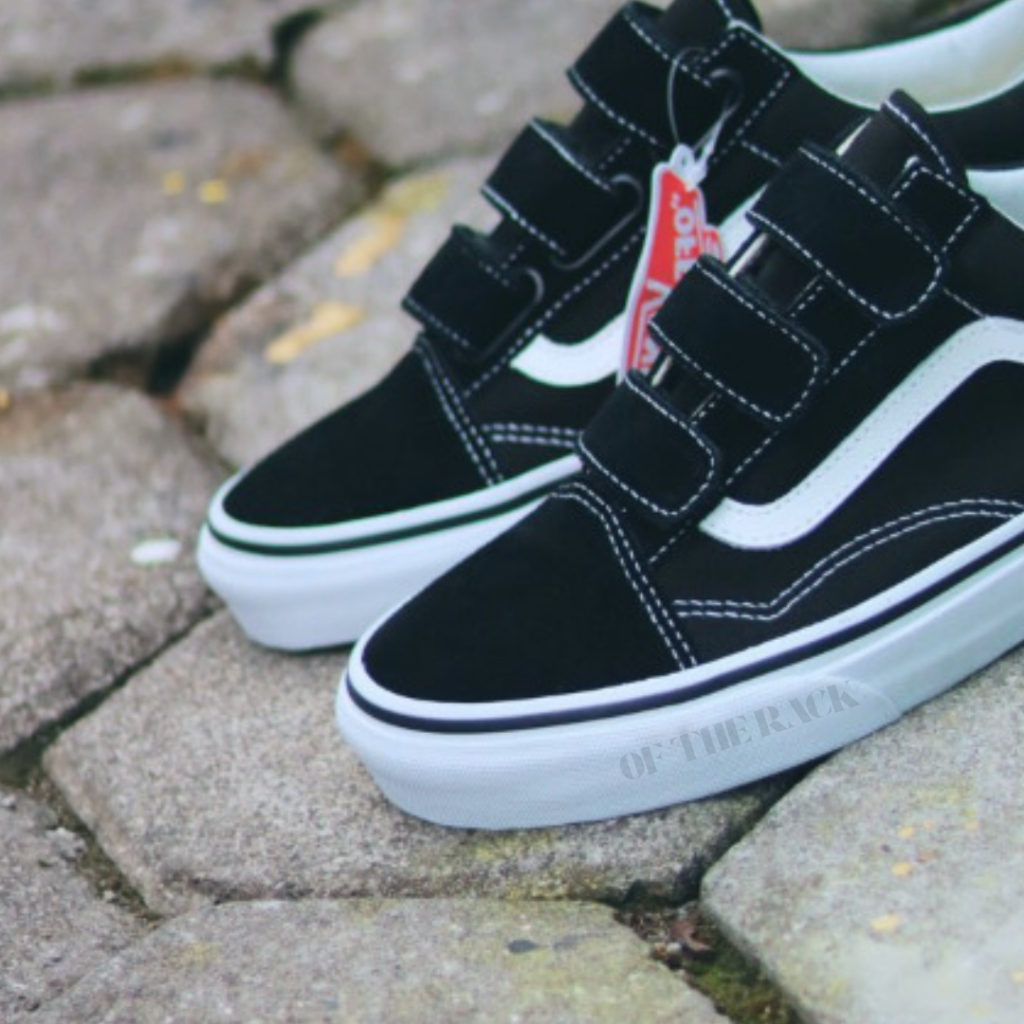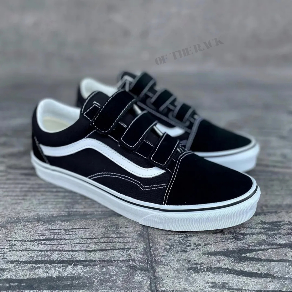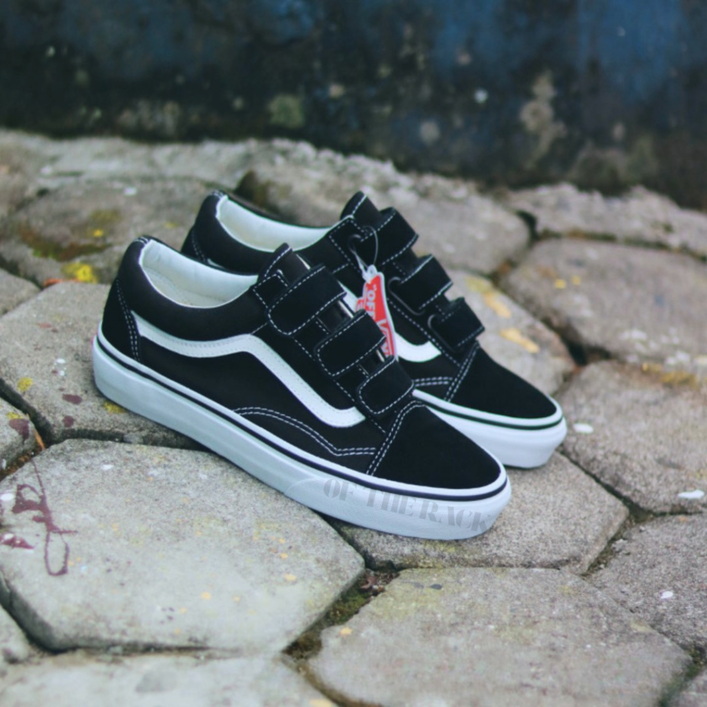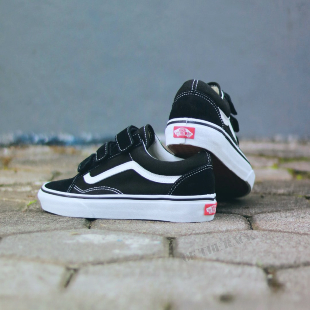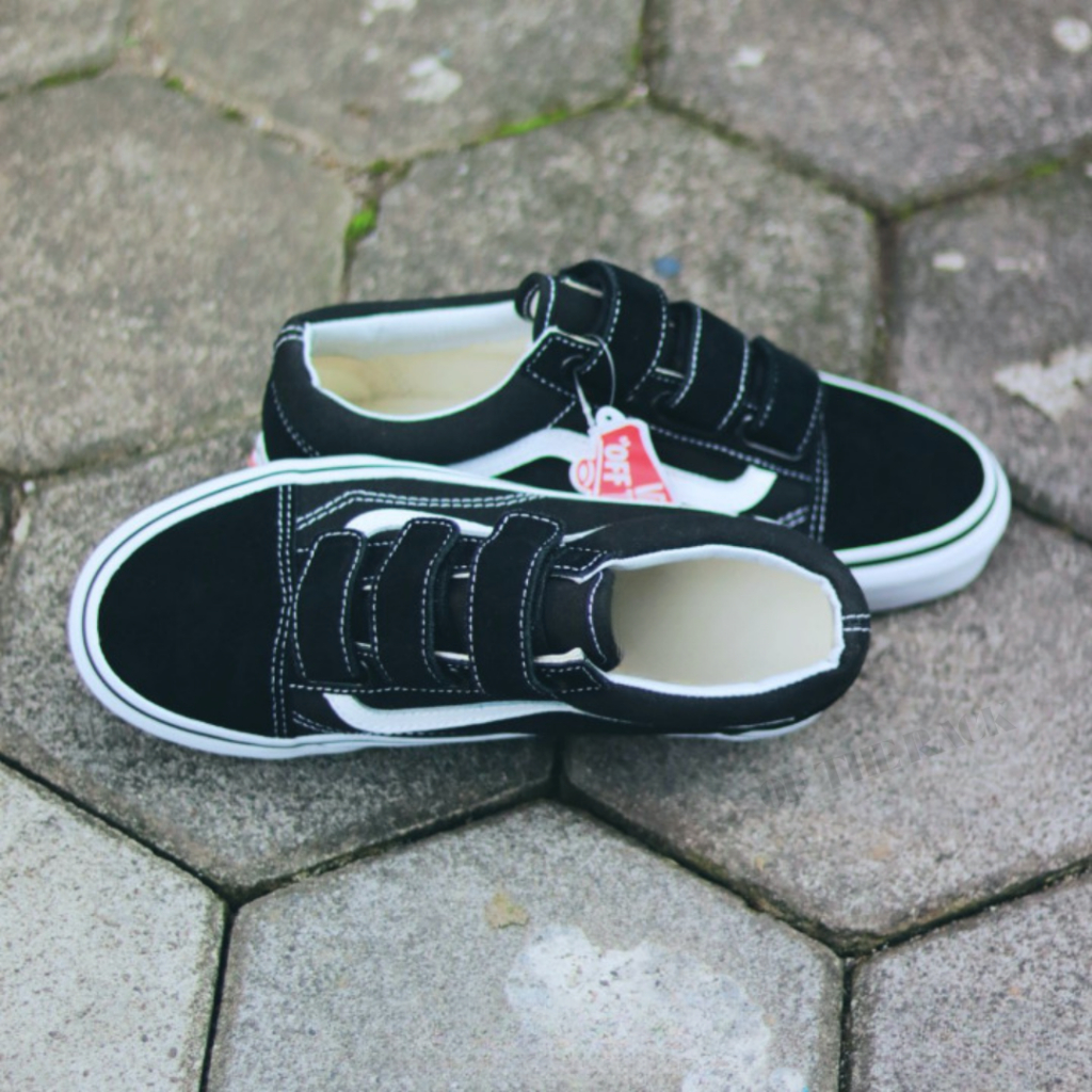 Sepatu Old Skool Velcro Black White Sneakers Casual Oldskool Hitam Putih