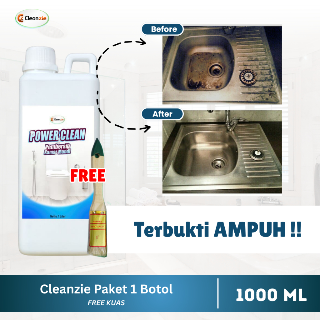 Cleanzie Official | Cleanzie Power Clean 1 Liter | Pembersih Kerak Kamar Mandi | Free Kuas