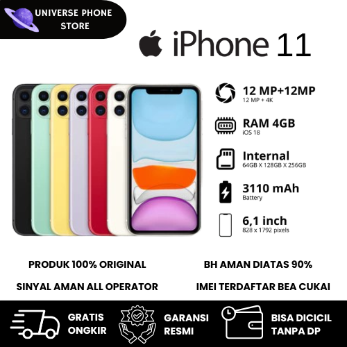 IPHONE 11 64GB 128GB SECOND INTER BC ORIGINAL LIKE NEW APPLE IP 11 BEA CUKAI ALL PROVIDER BERGARANSI