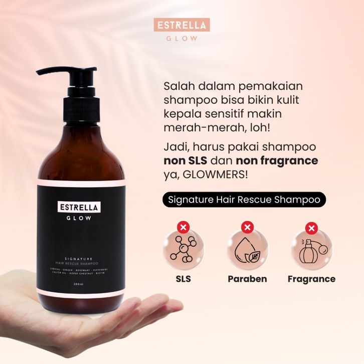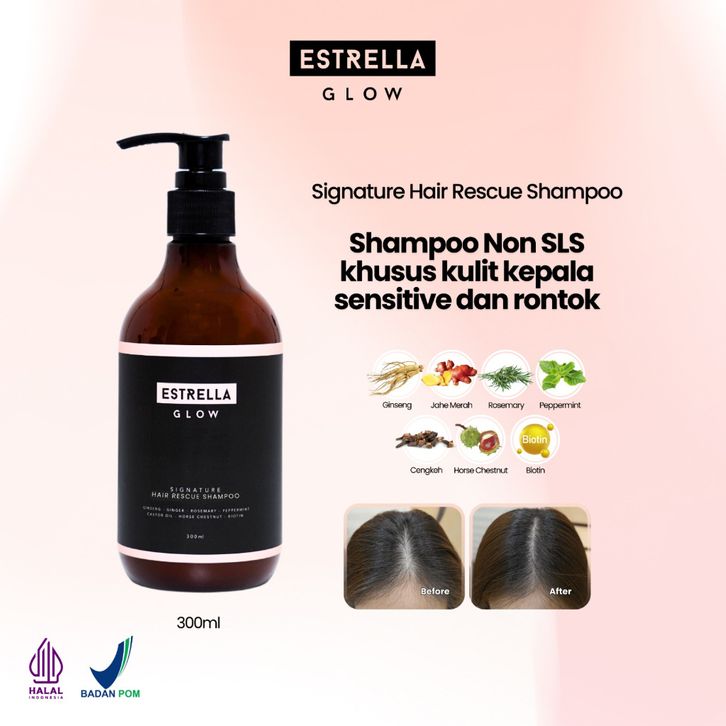 (BEST SELLER) ESTRELLA GLOW SIGNATURE HAIR RESCUE SHAMPOO 300ML, UNTUK RAMBUT RONTOK DAN KETOMBE