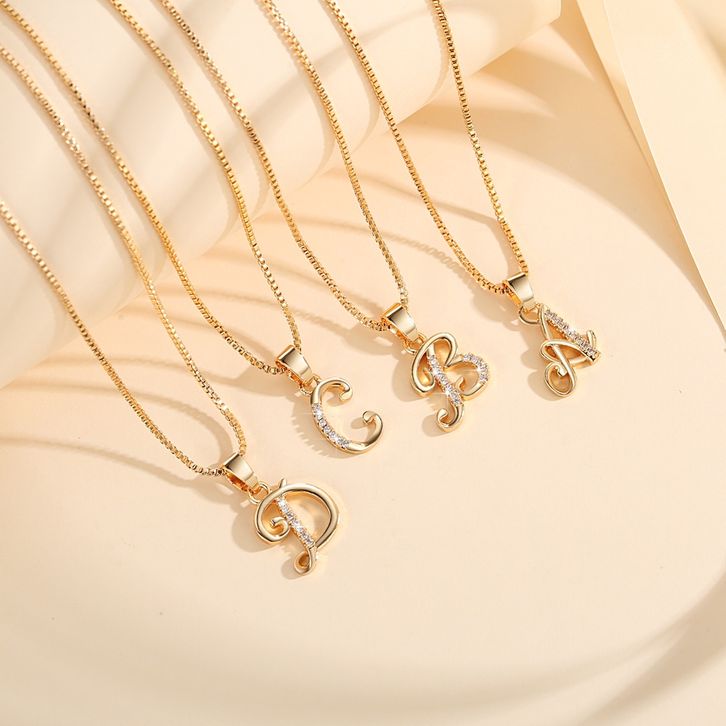 Kalung Titanium Huruf Wanita Lapis Berlian Perhiasan Anti Luntur Y877