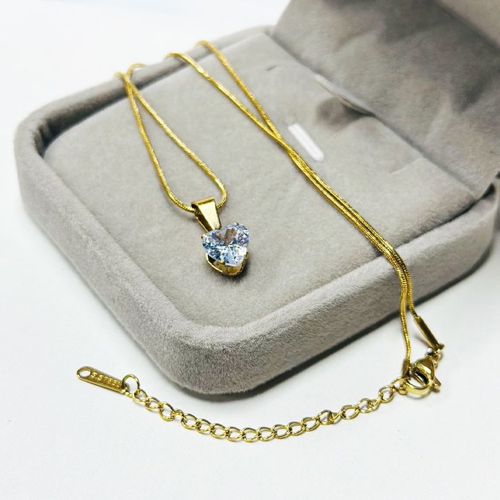 Kalung Titanium Zirkon Jantung Kalung Mewah Mewah Kalung Kelas Atas Wanita Rantai Tulang Selangka Serbaguna Sederhana