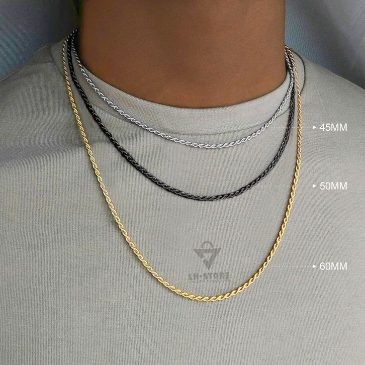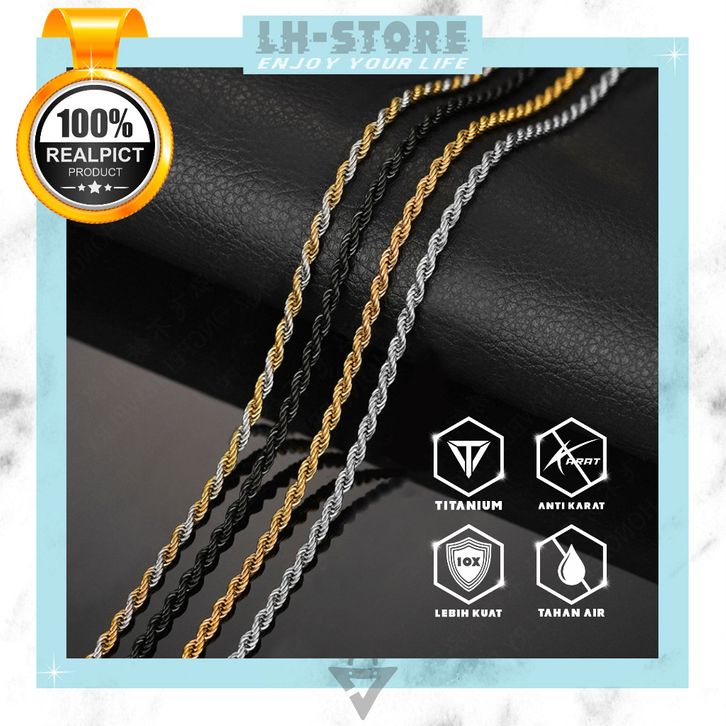 Kalung Tambang Titanium Pria Wanita Berlapis Perak Dan Tidak Luntur