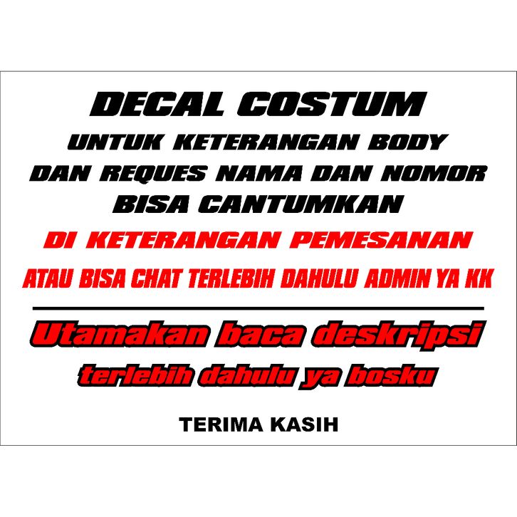 decal stiker full body crf 450 , crf 150L , klx bf , dtracker , gordon , wr , dll , custom desain bisa rubah warna nam