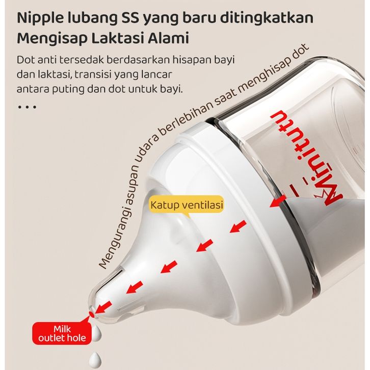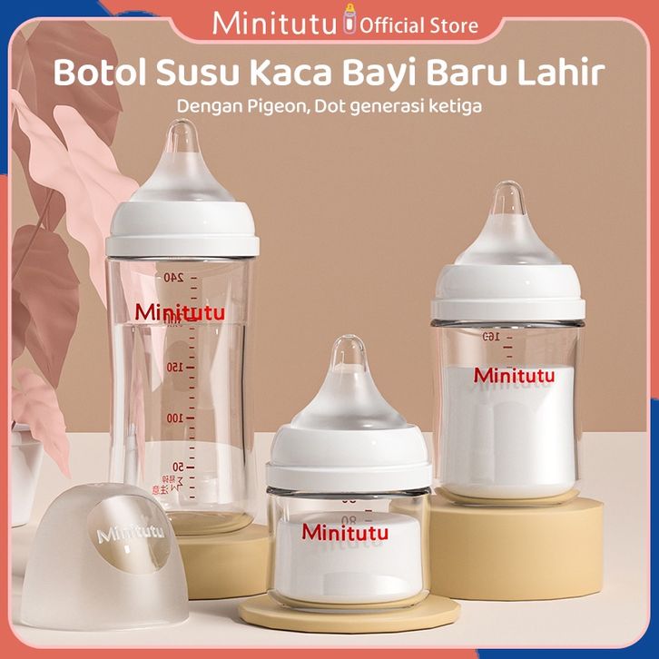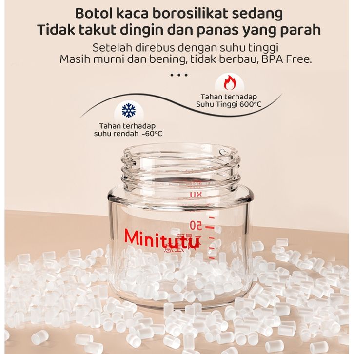ORIGINAL Minitutu Botol Susu Kaca Newborn untuk Bayi Baru Lahir Botol Dot Bayi Busur Lurus Bebas BPA Anti-Kolik