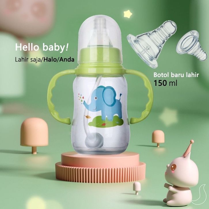 EKSKLUSIF Botol bayi 150ml dengan pegangan dot leher tipis botol bayi dot XM-002 onobg
