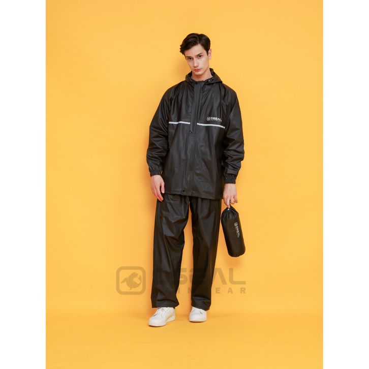 Jas Hujan OSEAL Full Seal Raincoat Mantel Pria Wanita Dewasa Shine Series Hitam