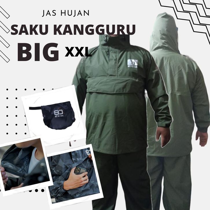 Jas Hujan Setelan JUMBO Pria Wanita Saku kangguru Bahan Taslan Anti Air